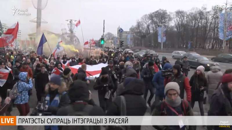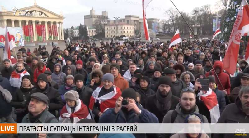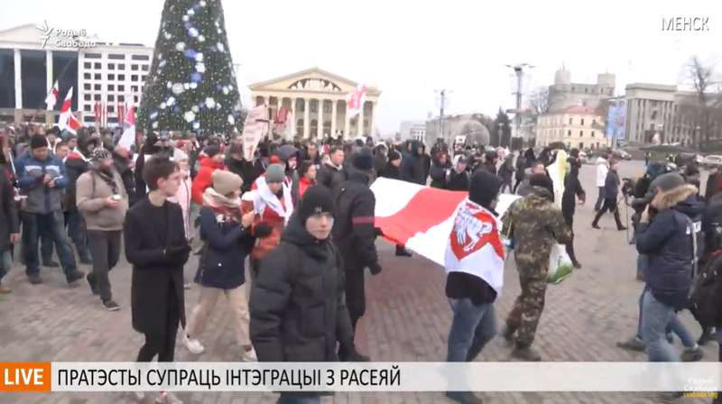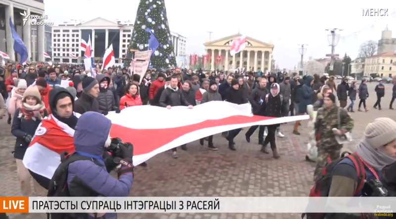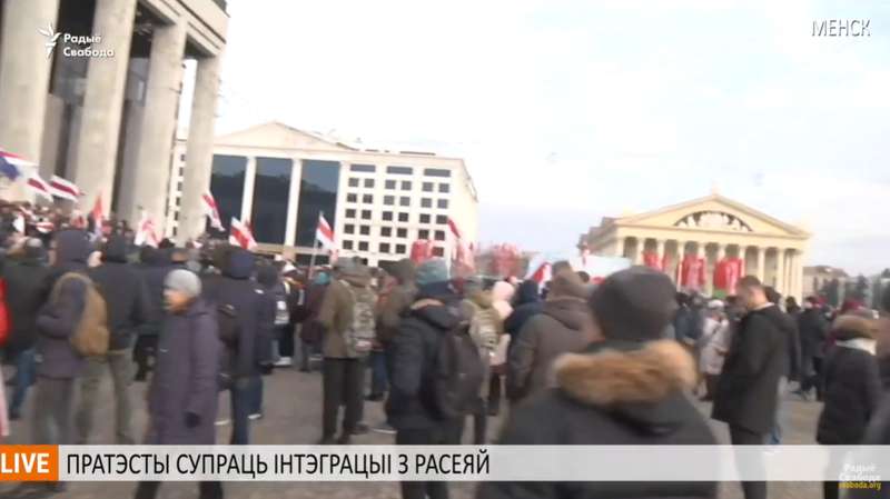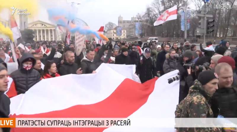 Граждане Беларуси вышли на акцию протеста против интеграции с Россией. В субботу, 7 декабря, более тысячи людей собрались в центре Минска, чтобы защитить независимость государства, передает "Радио Свобода".