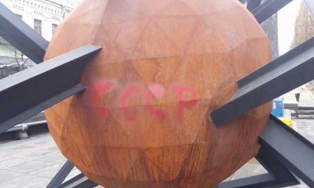 Вандалы разрисовали инсталляцию напротив Бессарабского рынка в центре Киева