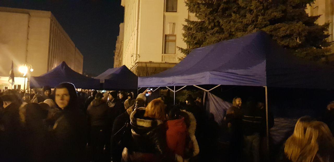 Появились фото с акции протеста у Офиса президента на Банковой, где установили палатки