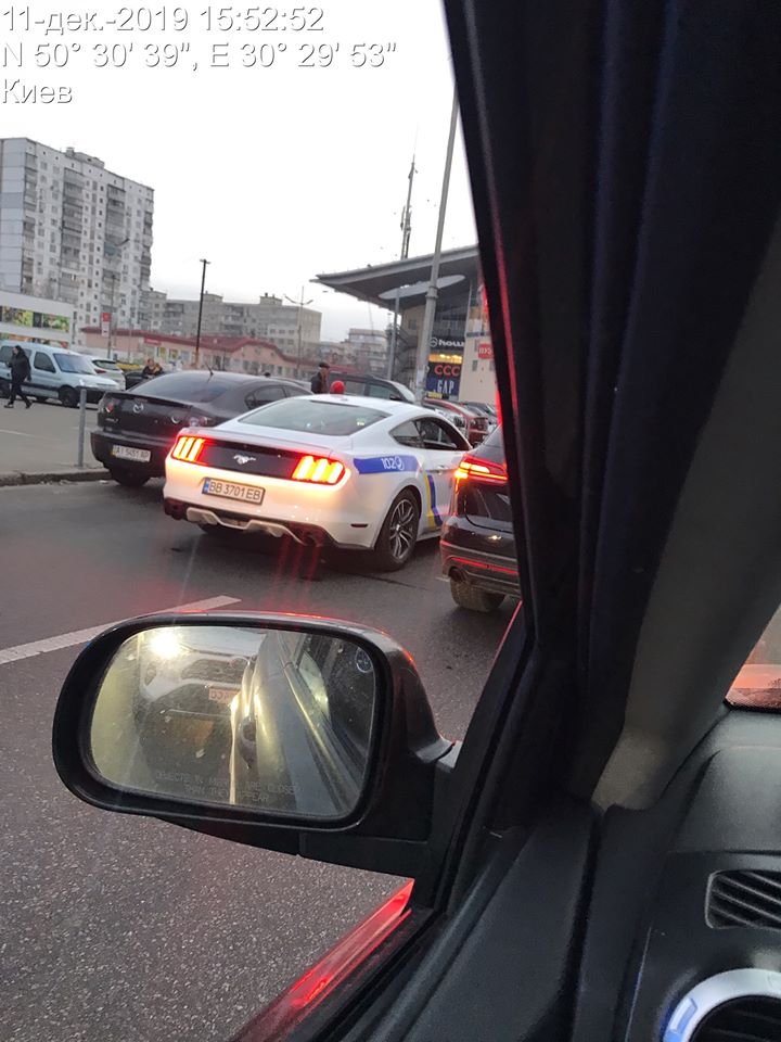 Инцидент произошел возле торгового центра «Дрим таун» в Оболонском районе столицы. Настоящая полиция остановила автомобиль Mustang, разукрашенный как транспорт патрульных. В салоне находилось двое парней, одетых в форму.