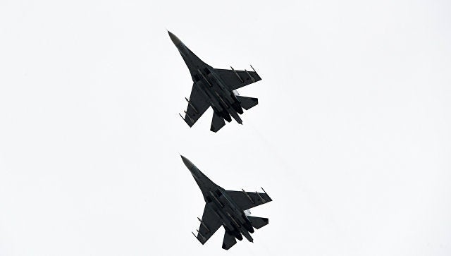 По данным российских военных, в ходе воздушного боя условный противник был побежден с помощью применения ракетного и стрелково-пушечного вооружения.