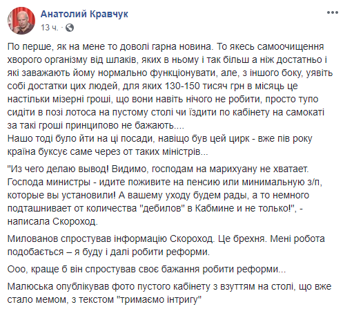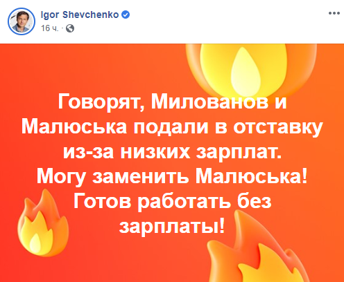 По некоторым данным, министры Милованов и Малюська даже подали премьер-министру Гончаруку заявления об отставке.