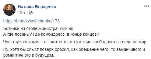 Журналист Наташа Влащенко назвала обувь на столе министра скучным.