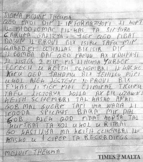 Журналистка, расследовавшая ряд скандальных и коррупционных историй, включая продажу мальтийского гражданства и историю с «Панамским досье» (Дафна написала о том, что что панамская офшорная компания «Egrant» принадлежит жене премьера Мишель Мускат), была взорвана в прокатном автомобиле в октябре 2017 года.