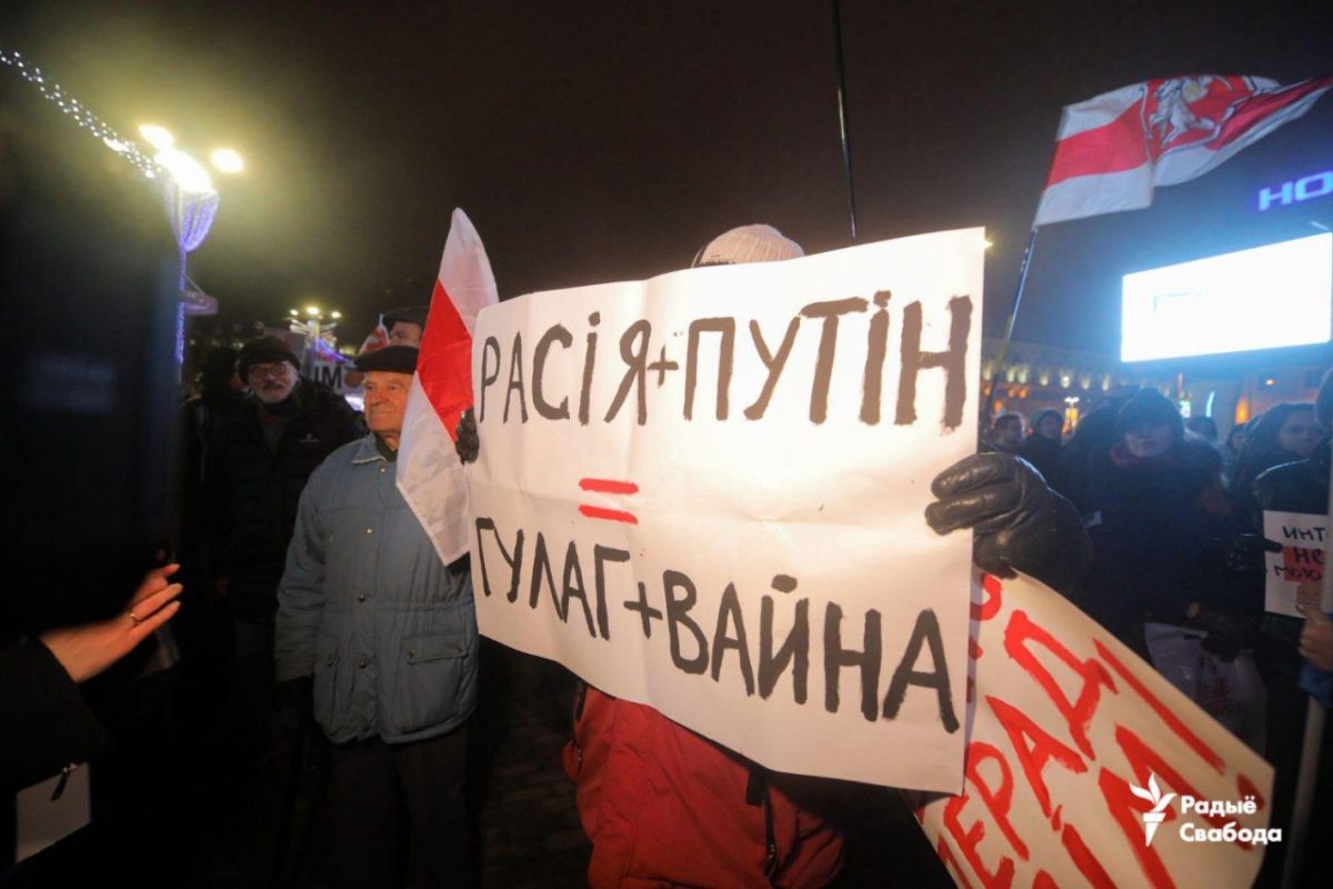 Вечером 20 декабря около полторы тысячи человек вышли в Минске (Беларусь) на протест против углубленной интеграции с Россией.