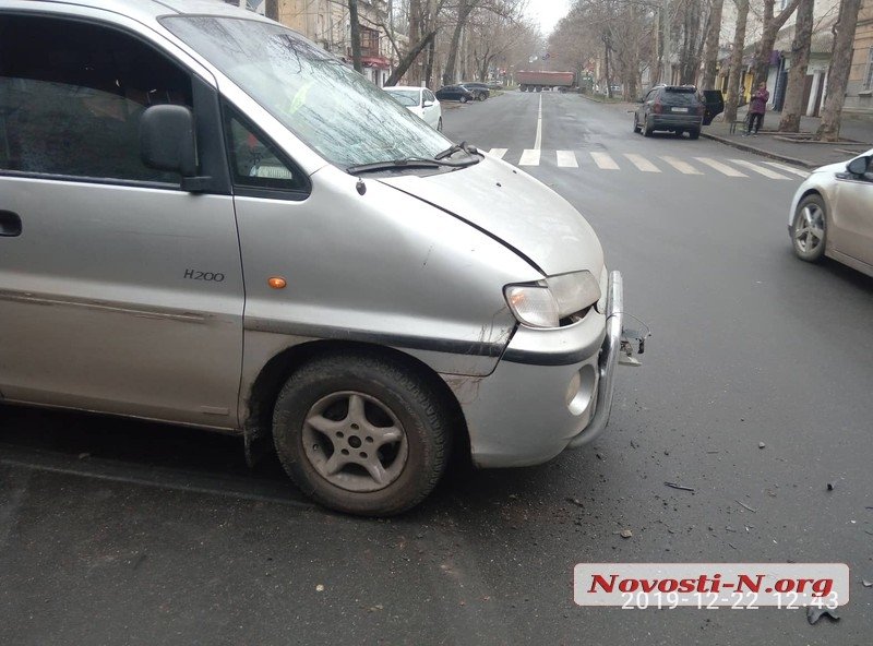 Днем, 22 декабря, в Николаеве на пересечении улиц Адмиральской и Фалеевской столкнулись микроавтобус Hyundai H 200 и Toyota Camry.