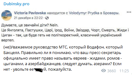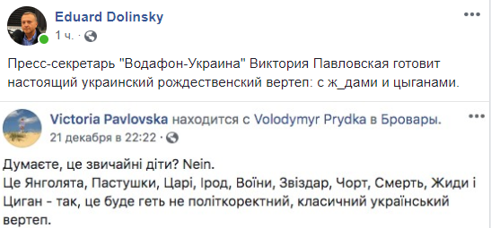 Пресс-секретарь Vodafone анонсировала "неполиткорректный украинский вертеп с ж@дами и цыганами"