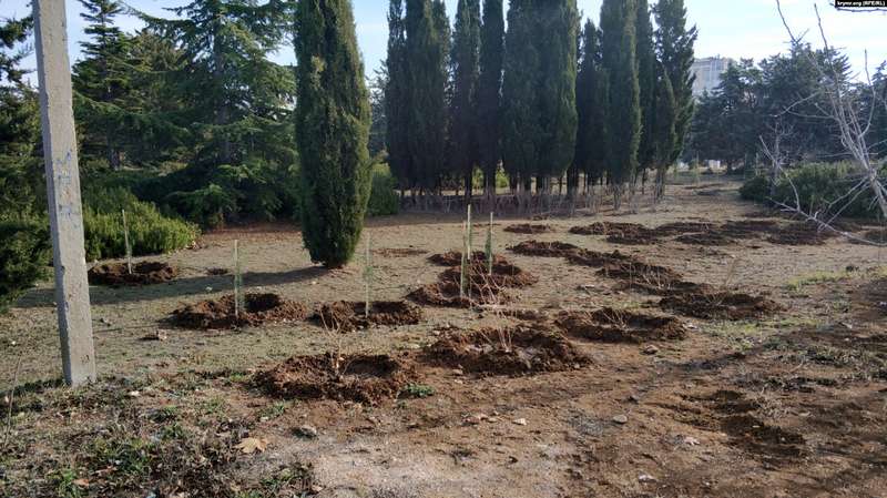 Высаженные деревья и кусты в парке Победы в Севастополе