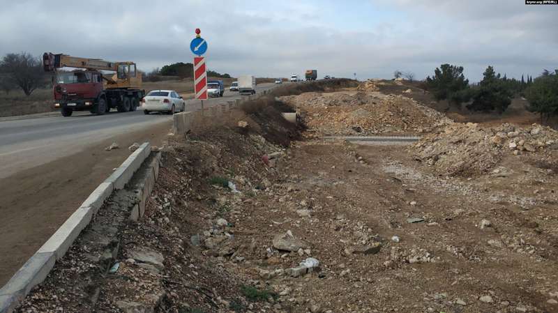 Только в октябре был определен новый подрядчик, которым стало "госпредприятие" "Севастопольский автодор". Собственных ресурсов на строительство дороги у городского предприятия, разумеется, нет, и оно привлекает субподрядчиков на отдельные участки. Сейчас работы ведутся только у мостового железнодорожного перехода, задействовано несколько единиц техники и немного рабочих-дорожников.