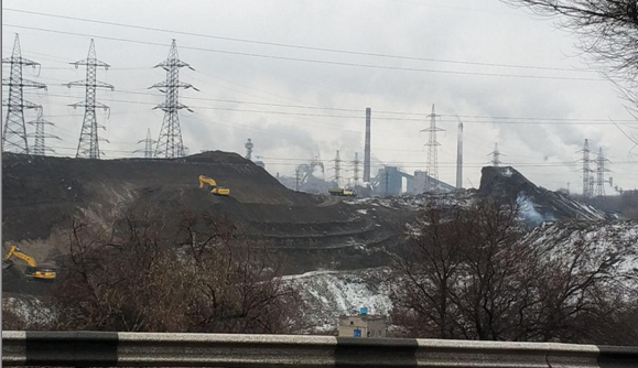 Свалка шлаковых отходов разделена на участки: часть принадлежит заводам группы «Метинвест», а часть городу. Заводская часть разработана вдоль и поперек и пополняется свежим шлаком, что видно на снимке.