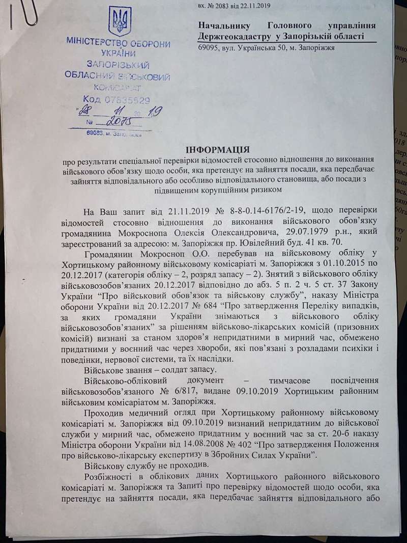 На дворе декабрь 2019 года. Евгений Шевченко народный депутат, глава подкомитета Верховной рады по вопросам промышленной политики и экономического развития. В сферу влияния уже входит Министерство развития экономики, торговли и сельского хозяйства во главе с Миловановым Т.С. а также подведомственный Госгеокадастр Украины. Госгеокадастр объявляет на 08 января 2019 года конкурс на должность начальника Госгеокадастра в Запорожской области. Кого лоббирует , подсчитывая дивиденды от будущего переоформления земельных участков , на эту должность депутат Шевченко Е.В.? Конечно же своего кандидата — Мокроснопа А.А.