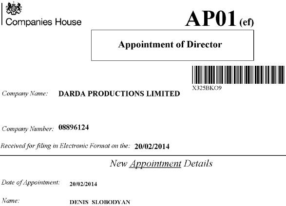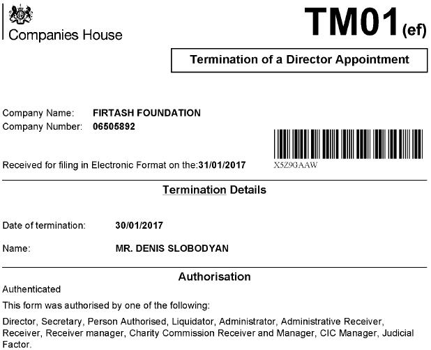 Крім того, встановлено, що Слободян Деніс протягом 20.02.2014-15.04.2016 обіймав посаду директора в іншій британській компанії – Darda Productions Limited (адреса: 206 Brompton Road, SW3 2BQ, Лондон, Велика Британія (будинок за вказаною адресою належить Д.Фірташу), засновником якої виступав благодійний фонд Д.Фірташа – Firtash Foundation.