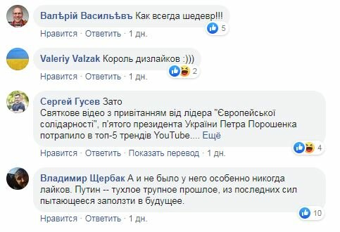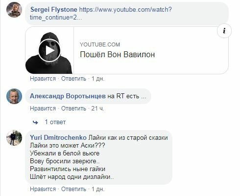 «Лайки падают, падают, падают… Российские телеканалы отключили счетчики лайков и дизлайков под новогодним обращением Владимира Путина на своих страницах в YouTube», — пишут DW на русском в Facebook.