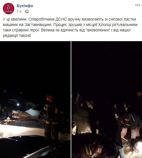 Ближче до опівночі силами ДСНС та людей з навколишніх сіл таки вдалося розблокувати автомобілі і визволити їх зі снігового полону.
