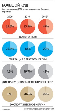 С доходом почти $5 млрд ДТЭК заняла третье место в составленном Forbes списке крупнейших компаний Украины. Выше только металлургические гиганты – ахметовский же «Метинвест» и ИСД. Впрочем, прошлогодние показатели уже не отображают реального размера компании. С учетом последних приобретений выручка ДТЭК за 2012-й, по прогнозам аналитиков инвесткомпании Dragon Capital, составит около $10 млрд. Это уверенное второе место.