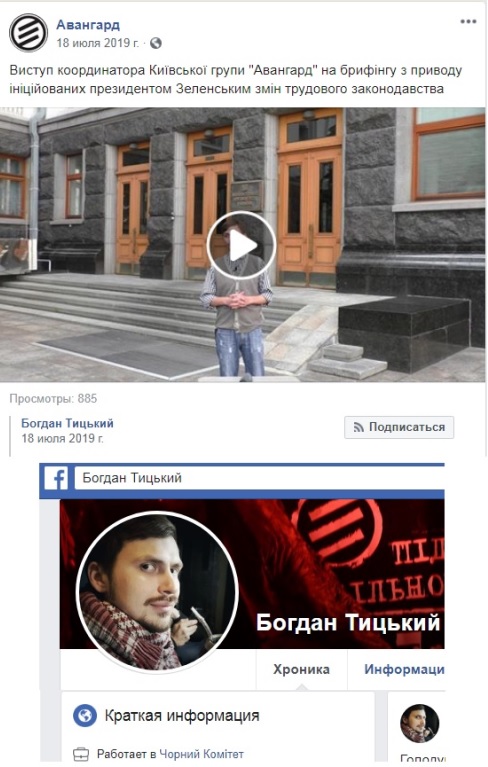 Зі сторінки групи «Авангард» у Facebook також відомо, що координатором київського осередку виступає Богдан Тицький. Той самий, який очолює націоналістичну організацію «Чорний комітет», та був затриманий за підозрою в причетності до організації зіткнень під Верховною Радою 31 серпня 2015 року.