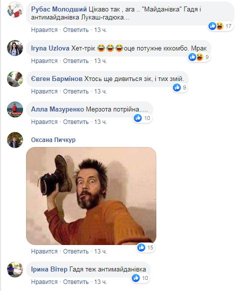 "Интересно так, ага ..."Майдановка" Гадя и антимайдановка Лукаш-гадюка", "Кто еще смотрит ЗИК, и тех змей", "Матушка батюшка - вот же гнездо змеиное", "Там еще Натахи Каральовскай не хватает и можно в преферанс лабать, где Надька будет за болвана на прикупе", - пишут в комментариях.