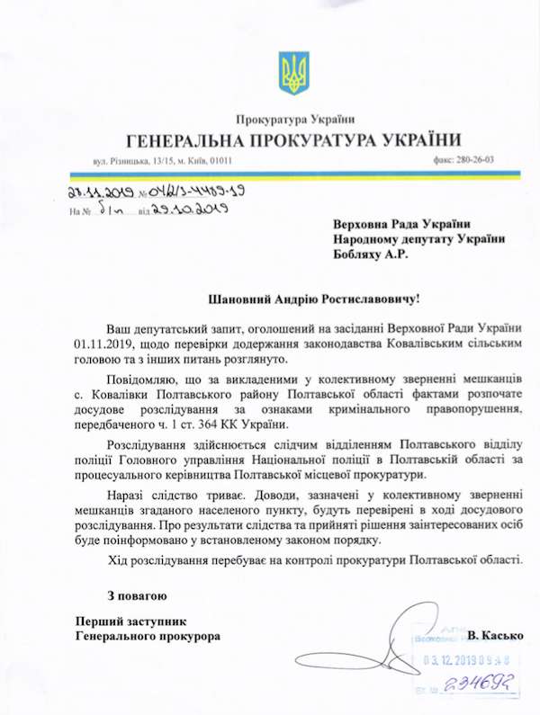 Скорость реакции правоохранителей на обращение нардепа Бобляха поразила. Не прошло и месяца, как дело в отношении братьев было возбуждено, о чем самому нардепу официально сообщил аж первый заместитель генпрокурора Виталий Касько: