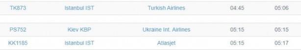 Лайнер рейса KK1185 компании Atlasjet был готов вылететь в то же время, что и украинский самолет. Рейс TK873 «Турецких авиалиний» совершил вылет на 9 минут раньше самолета МАУ.