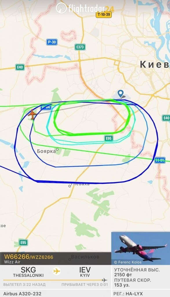 Самолет венгерской авиакомпании Wizz Air попал в опасную ситуацию над аэропортом "Киев" (Жуляны).