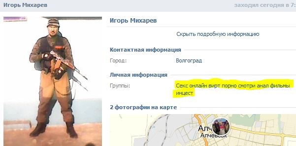 Ополченцы — люди высокодуховные и православные. Единственная группа, в которой состоит Михарев, как бы символизирует непорочные скрепы русского мира.