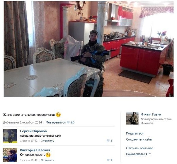 Доброволец из Елизаветино (Ленинградская область) — Руслан Псеушсвоими фото как бы напоминает, что на Донбассе проживало достаточно обеспеченных людей. Теперь вместо них проживают непрошенные гости из соседнего государства.