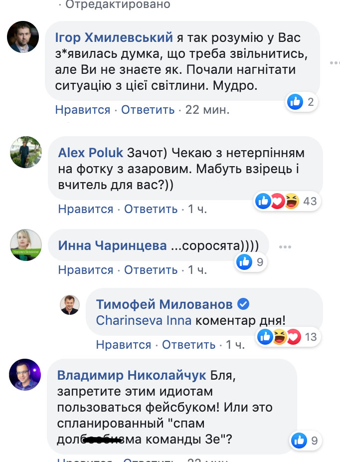 На некоторые комментарии Милованов старался отвечать с иронией.