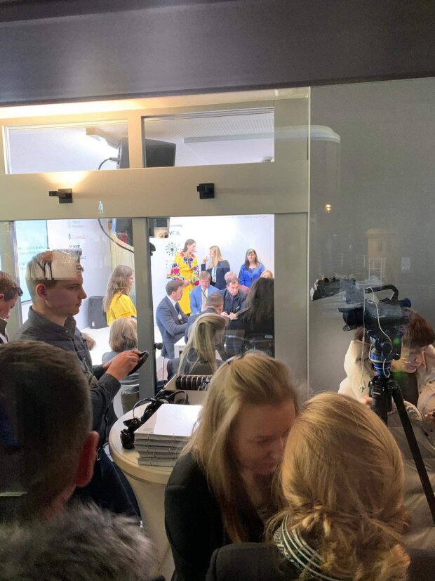 Позже в Украинский дом прибыл Гончарук, который решил изменить формат общения с присутствующими. Как стало известно, премьер пришел со своей охраной и сформировал «правильную» украинскую делегацию, заставив остальных покинуть помещение. С оставшимися Гончарук провел закрытый ужин.