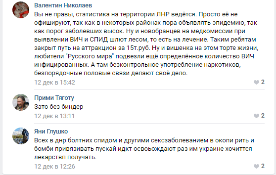 Жители ОРДЛО, почувствовав себя плохо, идут к бабке, гадалке, выкатывают рак яйцом, лечат порчу, теряют время и умирают. Это даже не эпидемия туберкулеза, это эпидемия глупости.