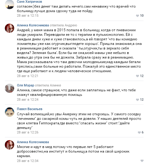 — в больницах хамство, тараканы, грязь и непрофессионализм, очень часто врачи, в том числе и "скорой" под шофе, то есть пьяные;