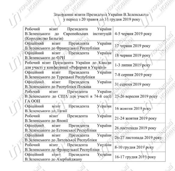 Также в ответе ОПУ говорится, что Зеленский в 2019 году совершил восемь официальных и пять рабочих визитов в 12 иностранных государств.