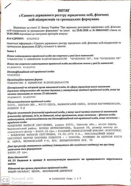 По информации потерпевших, в начале декабря 2019 года Татьяна Кучеренко зарегистрировала общество с ограниченной ответственностью (индикационный код 43429910). Вкладом в статутный капитал стали два блока цехов общей площадью 968,8 кв.м, на сумму 84 тысячи гривен. Руководителем был назначен Валерий Кондратюк.