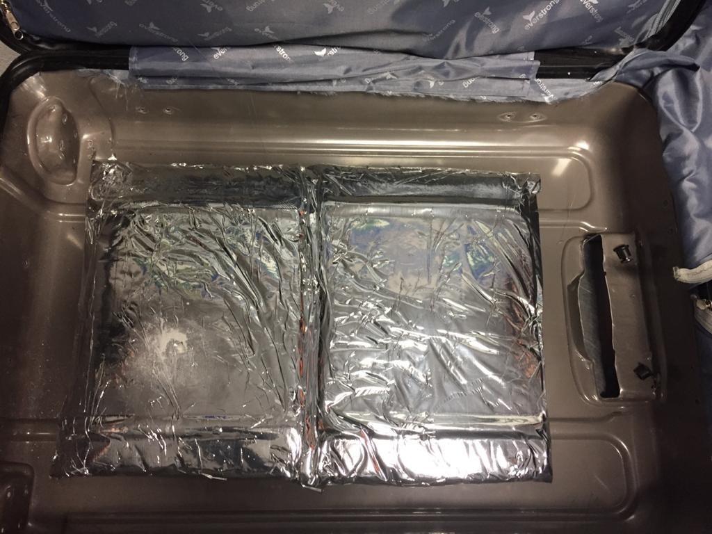 Під час огляду багажу громадянина Бразилії з подвійного дна його валізи вилучили 2 пакунки, всередині яких знаходилася порошкоподібна речовина білого кольору – кокаїн масою брутто 4,1 кілограм.