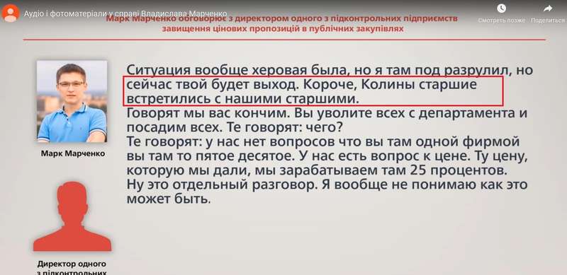 На пленках Марченко ссылаются не своих неких «старших», с которыми решались вопросы по их тендерным махинациям.
