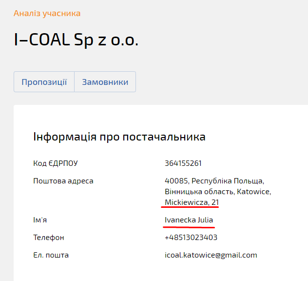 Польскую фирму зарегистрировали незадолго до крупного тендера по поставке угля на «Центрэнерго» в Катовице с уставным капиталом 5 тыс. злотых, а ее единственным основателем стала некая гражданка Словакии Юлия Иванечка. Ранее она имела отношение к компании B&B Energy харьковчан Владислава Бондаренко и Андрея Босого. Ей же принадлежит еще ряд компаний в Словакии совместно с другими украинскими бизнесменами.