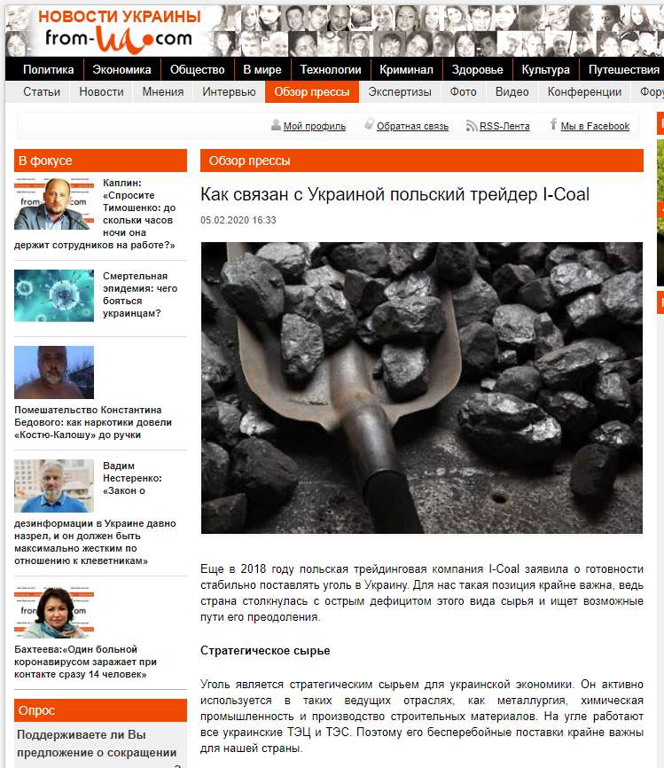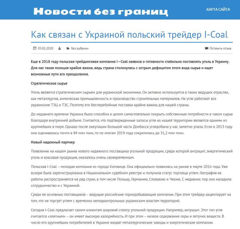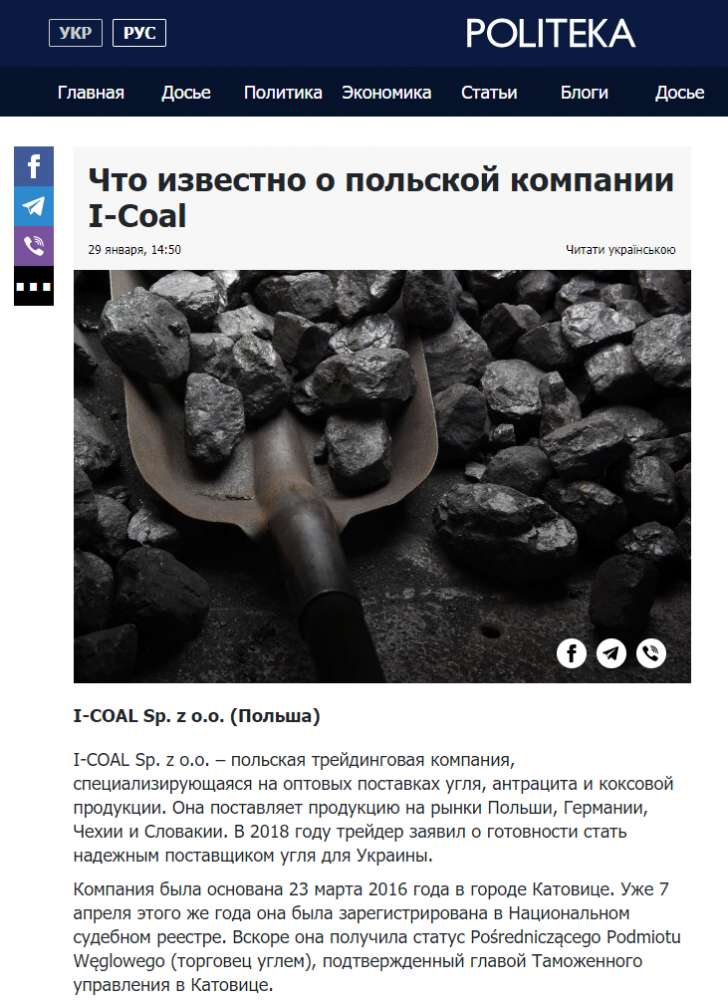 Несмотря на уголовные дела польская I-Coal активно хочет вновь работать на украинском рынке. Не случайно в январе-феврале на ряде новостных порталов появились одинаковые материалы о том, что трейдинговая компания еще в 2018 году заявила, что готова стать надежным поставщиком угля для Украины