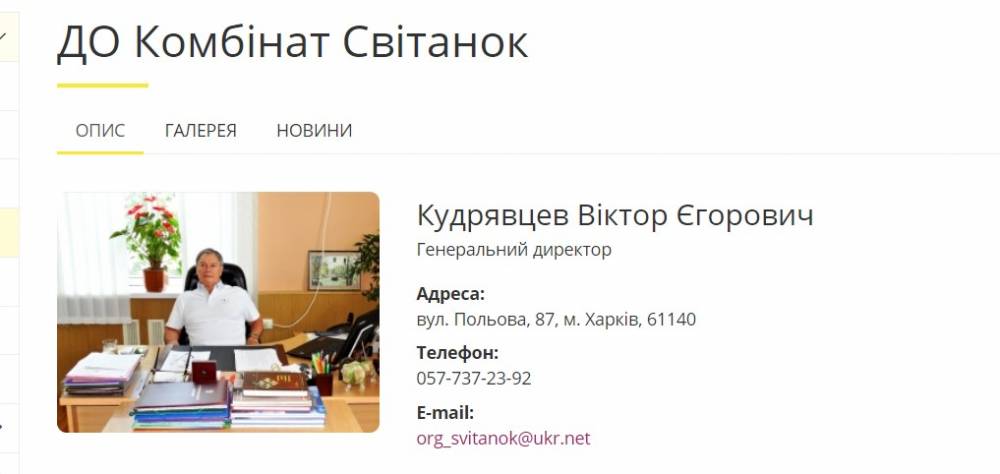 Директором ГО «Комбинат «Свитанок» является Виталий Кудрявцев. Именно он подписывал все сделки.