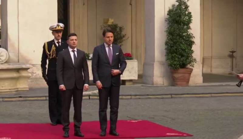 Президент Украины Владимир Зеленский 7 февраля прибыл с официальным визитом в Италию. Там на официальной церемонии он встретился с председателем Совета министров Итальянской Республики Джузеппе Конте.