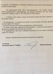 Чтобы выяснить, как идет это расследование, а также обратить внимание правоохранительных органов на аферу с продажей части имущества комбината Виталию Кропачеву по бросовой цене Михаил Бондар еще 29 января 2020 года направил соответствующий запрос в СБУ, НАБУ, Офис генпрокурора и ГБР на имя глав этих ведомств.
