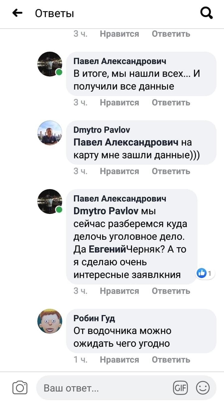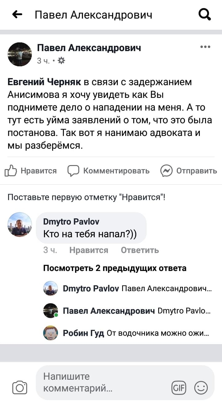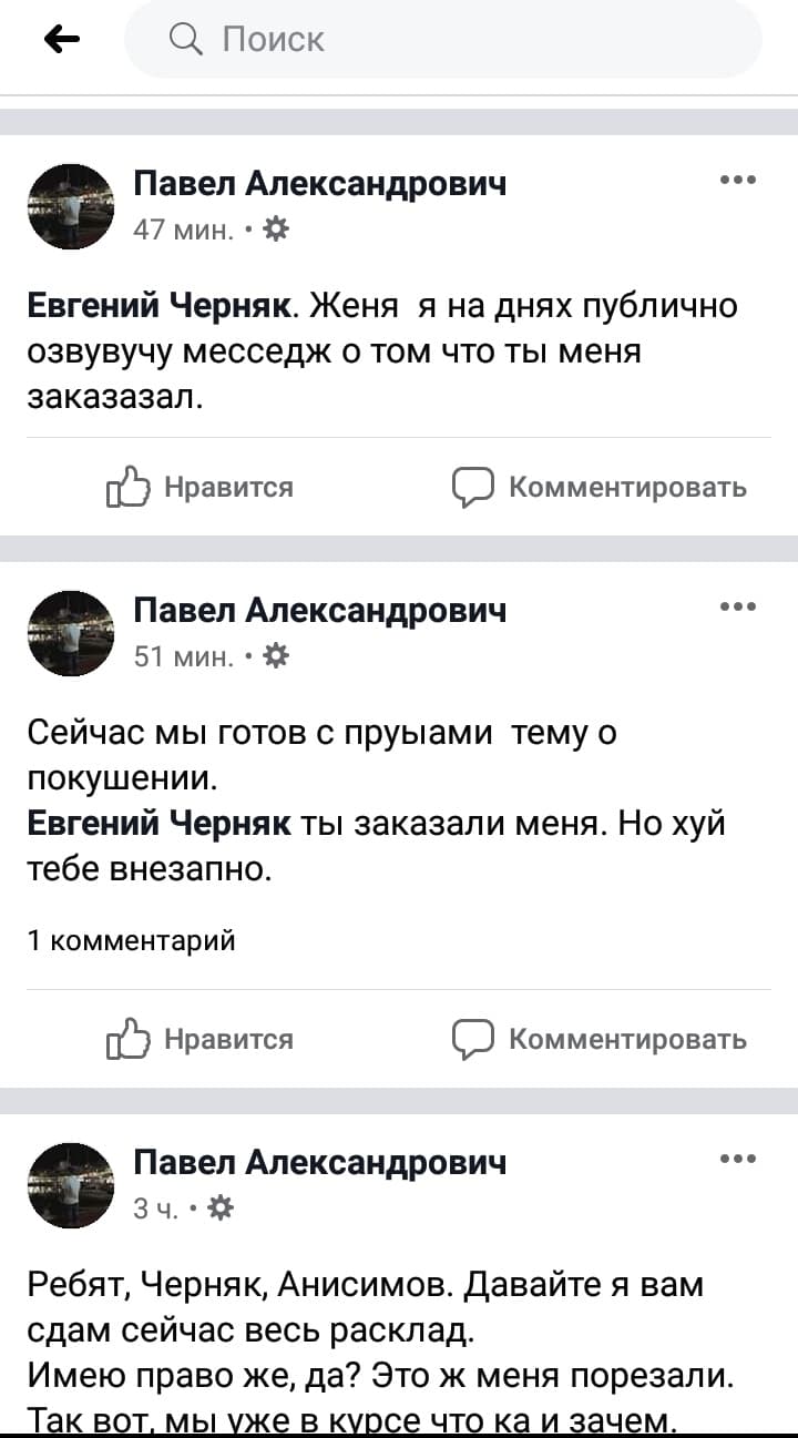 Павел Золотарев, более известный в Запорожье, как Павел Мясоедов, 20 февраля на своей странице в соцсети опубликовал несколько постов-обращений к Евгению Черняку, в которых вспоминает, как в 2010-2011 году во время разгара войны между Черняком и Анисимовым, ему (Павлу) досталось очень сильно. Как утверждает Павел, по команде Черняка его порезали. Он выжил, но вот обида не застарела и известный в Запорожье пиарщик собирается судиться с водочным магнатом.