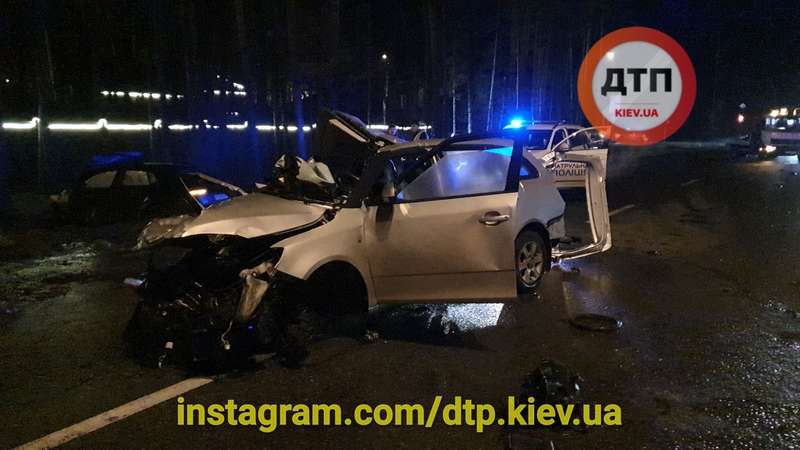“5 минут назад Skoda развернулась от Оболони и попала под сильнейший удар Audi, который двигался от Пущи. Шкоду вместе с Ауди отбросило на 70 метров. Пассажира чеха выбросило в кювет, водитель остался в авто. Оба погибли на месте. Водитель Ауди пострадал, госпитализирован. На месте работает СОГ. Не спешите…”, – написал он.