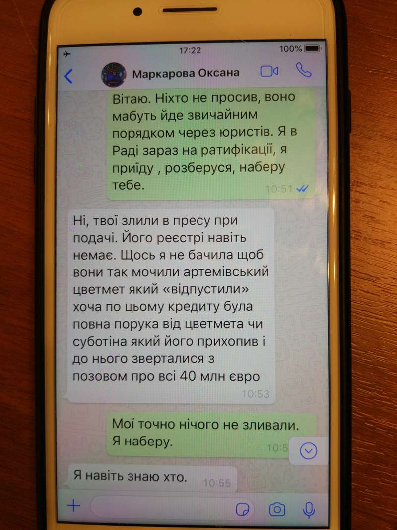 Маркарова же была уверена в том, что данную информацию слили в прессу его подопечные – Владислав Беседин, заместитель начальника юридического управления Укрэксимбанка и Сергей Миськив – заместитель главы Правления.