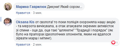 Другие же указали на недостойное поведение «недовольных», которые напали на активисток со спины.