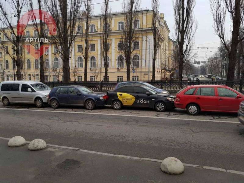 В центре Киева столкнулись 4 авто. Среди автомобилей, которые попали в ДТП, есть авто такси.