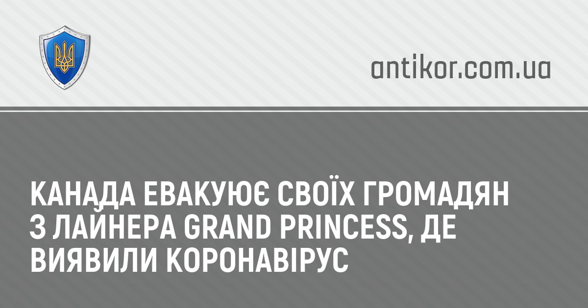 Уряд Канади планує евакуювати всіх своїх громадян, які того захочуть, з борту круїзного лайнера Grand Princess, на якому виявили інфікованих коронавірусом. Він стоїть біля узбережжя Каліфорнії.