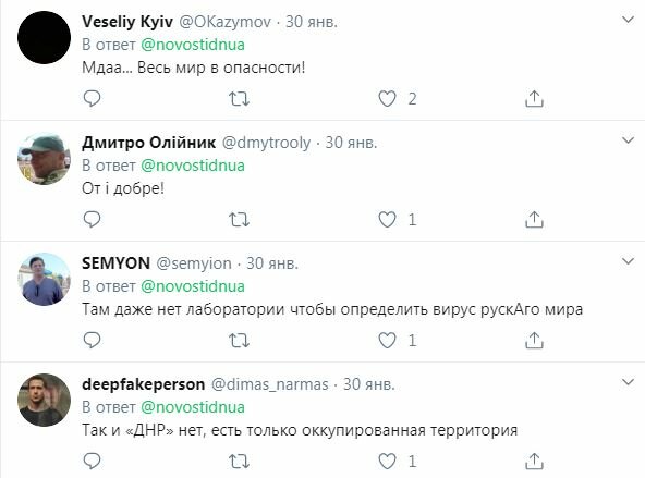 Но пользователи социальных сетей не верят, что на оккупированном Донбассе это единственный случай заражения коронавирусом. Еще в январе террористы жаловались, что в оккупационной “ДНР” нет лаборатории, которая способна распознать COVID-19.
