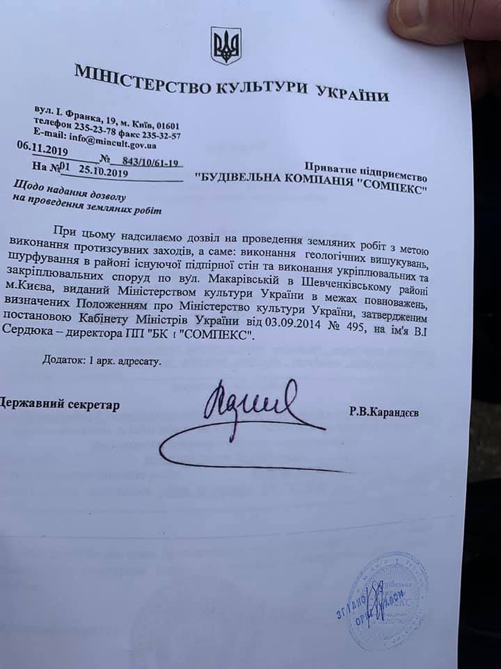До рук місцевих мешканців потрапив лист від міністерства культури за 06.11.2019, де фігурує дозвіл на технічні умови КП “СУППР” за 2017 рік (дивіться документ нижче, – ред.). Цей лист підтверджує, що попри заяви і протести місцевих мешканців, проєкт не міняли. По факту будинки заплановано знести.