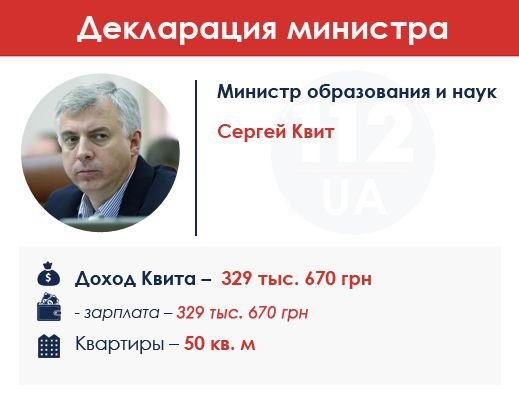 Министр образования – самый скромный министр в Кабмине. Указал в декларации лишь 329 тыс. грн зарплаты и квартиру на 50 квадратов. Квит до назначения в Кабмин был ректором Национального университета "Киево-Могилянская академия". В 90-х гг. был журналистом в украинских журналах, с 2001 г. преподавал в "Могилянке". Какого-либо бизнеса не имеет, в большой политике замечен не был, однако украинские СМИ регулярно включают его в списки самых влиятельных людей страны.