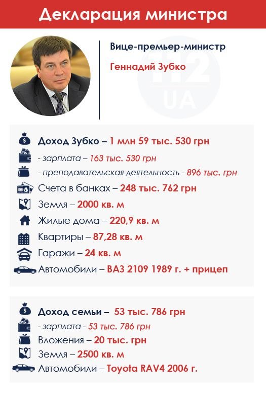 У Зубко с женой также есть дом, квартира, два авто - ВАЗ 2109 и Toyota RAV4 - и 248 тыс. грн на счетах.