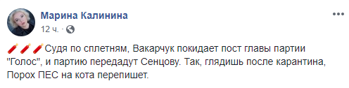 Пользователи украинского сегмента Facebook остро отреагировали на уход Вакарчука от руководства “Голосом”. Одни разочарованы в Вакарчуке-политике и считают его решение логичным, другие же откровенно над ним смеются.